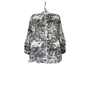 41 Hawthorn Black White Gray V Neck Roll Tab Sleeve Top Blouse Women's Size M