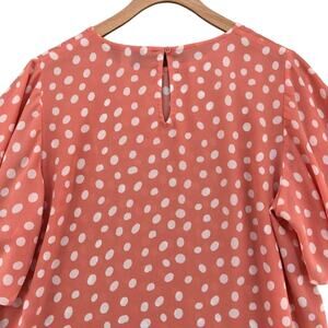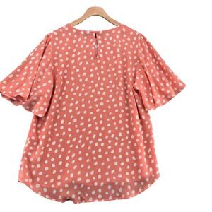 41 Hawthorn Blouse Women Large Pink Polka Dots Flutter Sleeves Career Classic