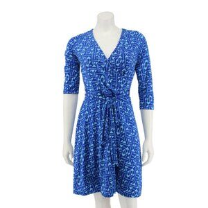 41 Hawthorn Blue Matte Jersey Knit 3/4 Sleeve Belted Faux Wrap Dress Size S