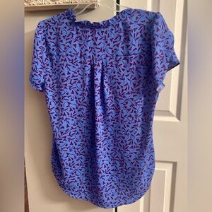 This charming blouse from 41 Hawthorn showcases a delightful combination of blue and pink hues, enhanced by flutter sleeves and ruffled details. The short sleeves and lightweight fabric make it an ideal choice for warm weather, offering both comfort and style. Perfect for adding a touch of elegance to any casual or semi-formal occasion.