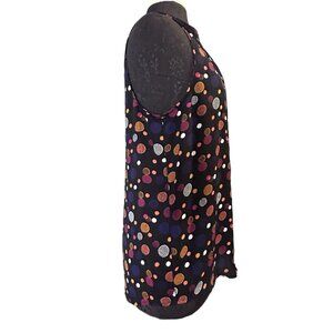 41 Hawthorn Bohemian Blouse Top Size M Sleeveless Black with Orange Red White and Purple Polka Dots Pleated Front
