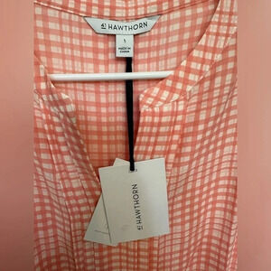 41 Hawthorn Breyson Pleated Sleeveless Blouse- Peach/white Check - Large - NWT It is a sleeveless blouse with a V-neckline and pleated accents. Size large