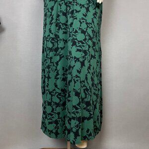 41 Hawthorn women's floral maxi dress with elastic shirred back a slit at the side skirt. Pull-on style. Green and black.
