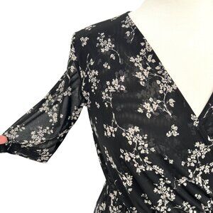 41 Hawthorn Floral A-Line Mesh Dress Black Short Sleeve Size Small NWT