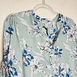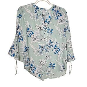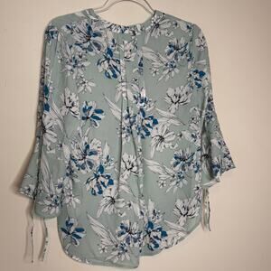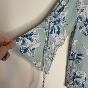 41 Hawthorn Floral Bell Sleeve Blouse Blue Split Neck NWT Size XS Petite