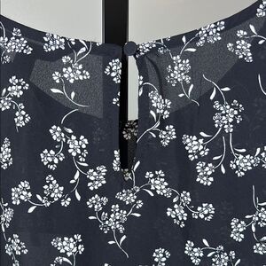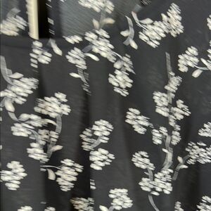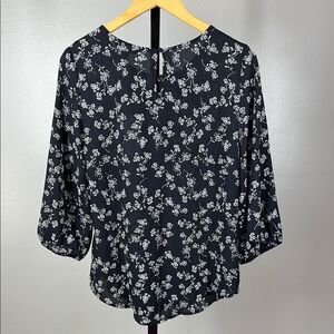 Chic floral blouse. Features a black base with white floral design. Perfect for casual outings.