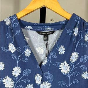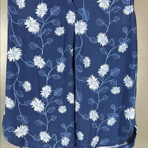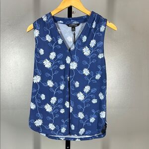 This elegant sleeveless top features a beautiful floral pattern on a rich blue background. Perfect for casual outings or a day at the office.