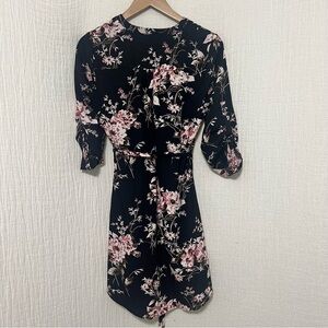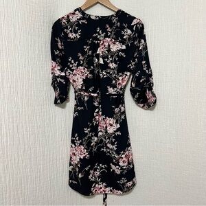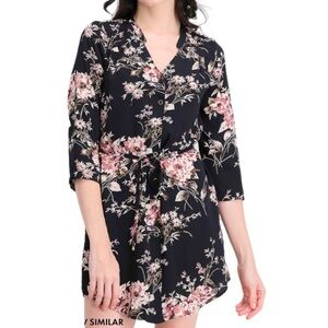 41 Hawthorn Floral Shirt Dress L Roll Tab Sleeves Black