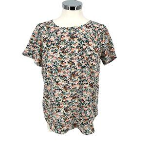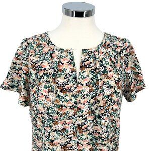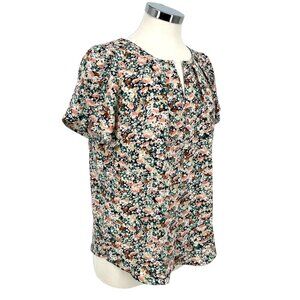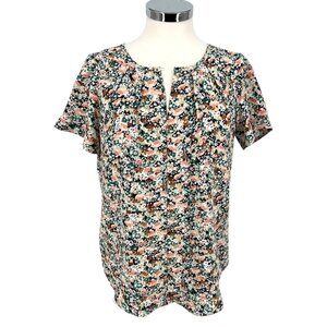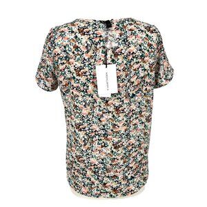 41 Hawthorn Floral Short Sleeve Split Neck Top Multicolor Size Petite Small NWT