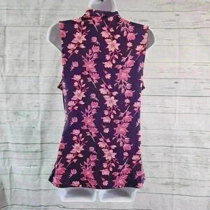 41 Hawthorn Front Faux Wrap Knit Top Blouse Size S Petite Purple Pink Floral