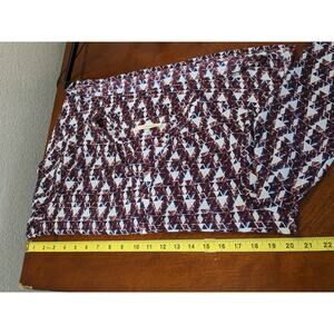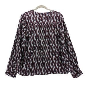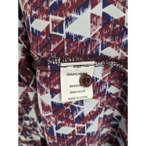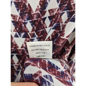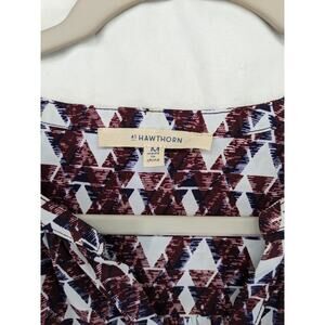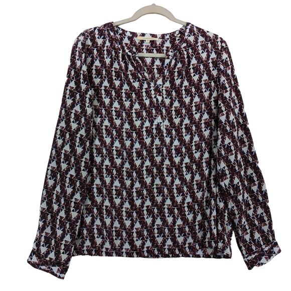 41 Hawthorn Geometric Blouse M Red VNeck Roll Tab Long Sleeves Office Top Career