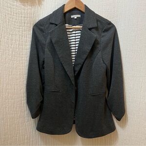 41 Hawthorn Benson Blazer 3/4 Ruched Sleeves Grey. Color: Grey. Ruched sleeves. Single button closure. 2 front faux slit pockets. 95% polyester/5% spandex.