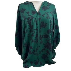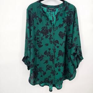 41 Hawthorn Green Black Floral Flowy Whimsigoth 3/4 Sleeve Boho Blouse Top 1X