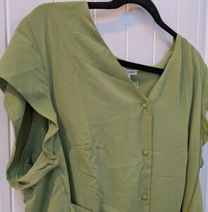 41 Hawthorn Green Tie Front Shirt Midi Dress