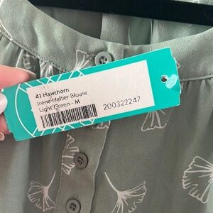 Elegant sage top with delicate white leaf design. Ideal for everyday wear.