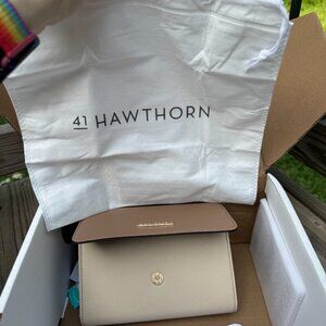 This is a 41 Hawthorn Jasmine Wallet. They consider it a crossbody bag. The shade is a light beige to tan with a rose gold 41 Hawthorn emblem. The tag says Stitch fix and it sells on their site for $45. This was sent to me by another Posher. There is a dust cover bag folded inside this bag to protect it. The chain is a gold and leather detail looking chain. There is protective foam and paper still inside the bag. This is not something I would use so I'm passing it on to somebody who can use it. Make me any reasonable offer, and I will accept.