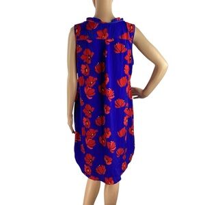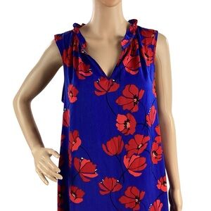 41 Hawthorn Jeanie Floral Ruffle Neck Sleeveless Dress Blue Red L