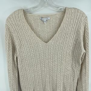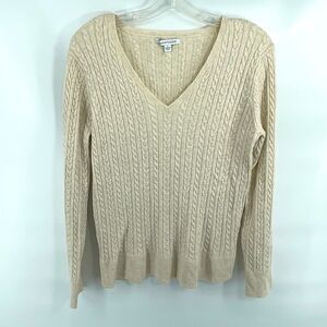 41 Hawthorn cream cable knit v neck sweater cashmere silk EUC Large preppy