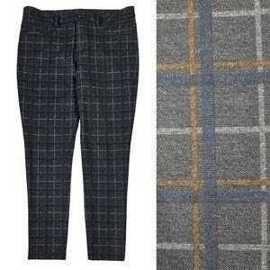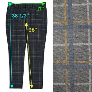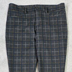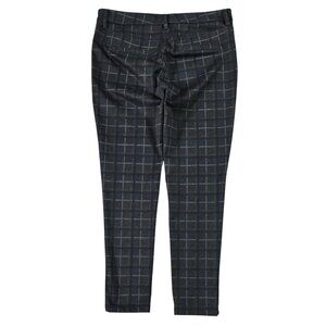 Good used condition, with no stains or tears. Grey plaid skinny pants, with a mid rise. Ankle length. Has 1 functional pocket and a zip fly/button closure. Comfortable and stretchy.