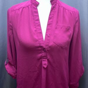 41 Hawthorn Maroon Red Cranberry tab 3/4 sleeve button up shirt top XS
