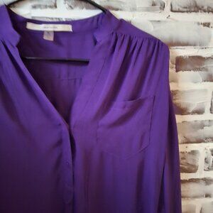 41 Hawthorn purple lightweight blouse with long sleeves, v-neck and pocket. Medium. Armpit to armpit is 19 inches. Shoulder to hem is 29 inches. No holes or stains.