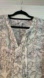 Elegant blouse with black floral design. Soft white fabric. Perfect for any occasion.