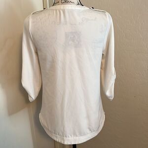 41 Hawthorn Off White Button Pockets Semi Sheer Feminine Contemporary Top, size XS, button closure. Pockets in the front, view all photos for best representation, in great pre owned condition.