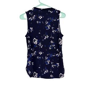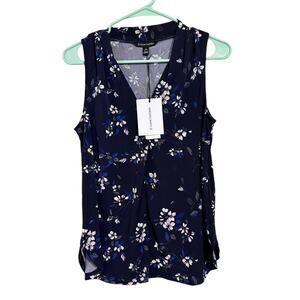 41 Hawthorn Petite Small Sleeveless Blue Floral Blouse NWT V Neck