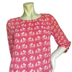 41 Hawthorn Pink & White Elephant Print High Neck Cuffed Sleeve Blouse Size XS