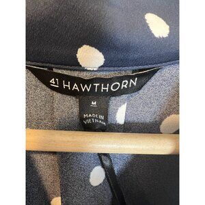 41 Hawthorn Polka Dot Sleeveless Blouse Top Med Navy White V-Neck Flowy Coastal