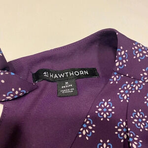 41 Hawthorn Purple Geometric Floral Blouse Top Polyester & Spandex Medium Petite