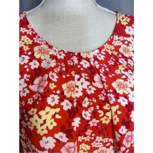 This elegant blouse from 41 Hawthorn showcases a striking red and white color palette with delicate pleats that add a touch of sophistication. The lightweight fabric and flowing silhouette make it perfect for warm weather, while the rounded neckline enhances its casual yet refined style. Ideal for both casual outings and more formal occasions, this blouse is a versatile addition to any wardrobe.