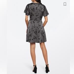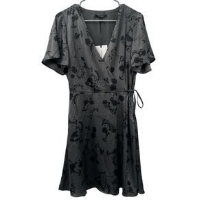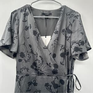 41 Hawthorn Scarlett Gray Floral Flutter Sleeve Satin Wrap Mini Dress S & M NEW