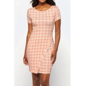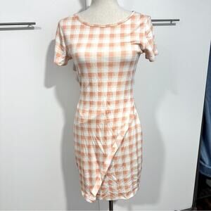 41 Hawthorn Size S Peach White Plaid Knit Pencil Dress NWT Stretch Summer Career
