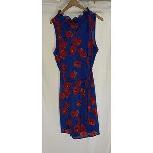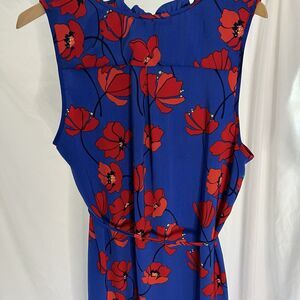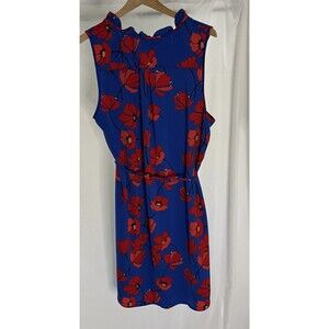 41 Hawthorn Sleeveless Blue Red Floral Dress Belted XL