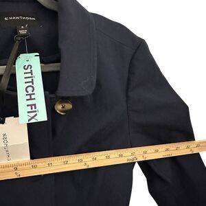 41 Hawthorn Stitch Fix Navy Blue Stretchy Long Trench Belted Jacket Size M NWT