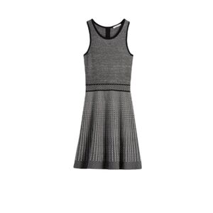 41 Hawthorn Stitch Fix Womens Zander Sweater Dress Size Petite Large Fit and Flare Black White. Thick quality knit ~Multi print ~A line textured swing skirt ~Fitted sleeveless round neck top.