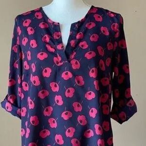 41 Hawthorn (Stitch Fix) navy blue long sleeve blouse w/ red poppy design, M