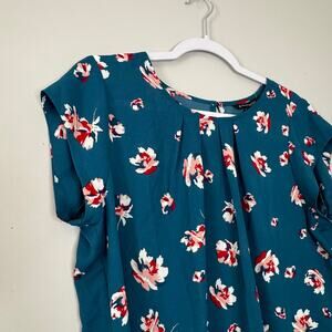 41 Hawthorn Teal Floral Pleated Short Sleeve Blouse Women’s Med Petite NWT