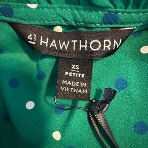 41 Hawthorn Tiffiny Tulip Sleeve Blouse V-Neck Green Polka Dot NWOT XS Petite