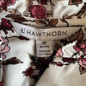 41 Hawthorn Tiffiny Tulip Sleeve Blouse Women’s XS Petite White Maroon NWT