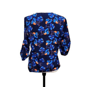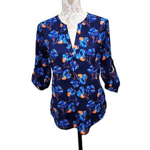 41 Hawthorn Top With Blue/Orange Floral V-Neck Tunic, Size S