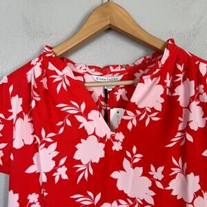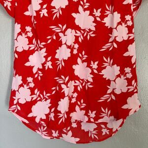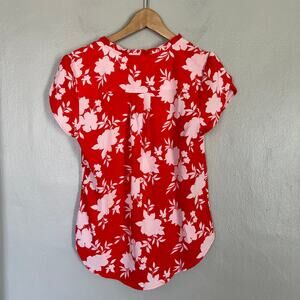 41 Hawthorn Tulip Sleeve V-Neck Blouse Floral Top Red Pink NWT Women's Size S