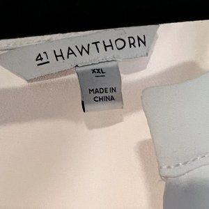 41 Hawthorn White Split Neck Blouse, Pullover style, short sleeved Size XXL