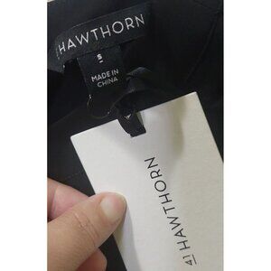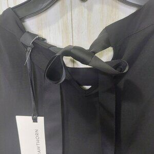 41 Hawthorn Women's Black Drape Front Blouse With Ribbon Tie Neck Sheer Front