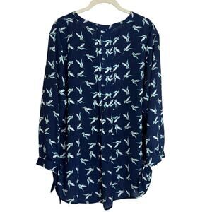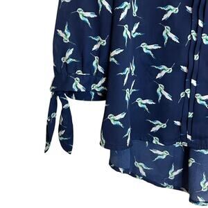 41 Hawthorn Womens Blouse XXL Navy Blue Hummingbird Print Tie Sleeve