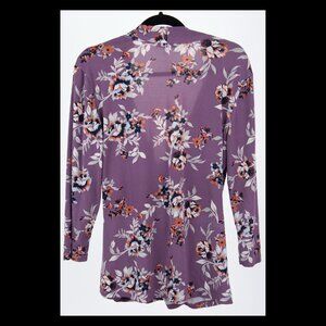 41 Hawthorn Womens Purple Floral 3/4 Sleeve Vneck Ruched Wrap Top XL EUC