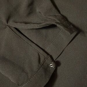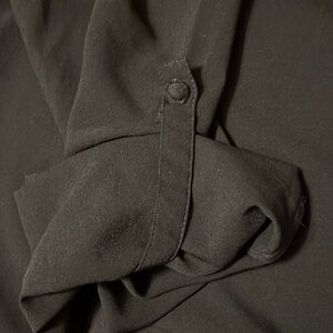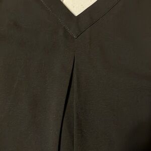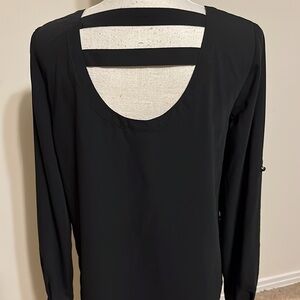 41 Hawthorn black long sleeve blouse. V neck, button cuff on sleeves or can roll up with tab. Two bands across back . New with tag. Small
