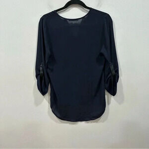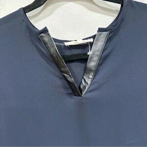 🍁 41 Hawthorn navy blouse with faux leather detail XS