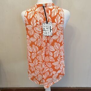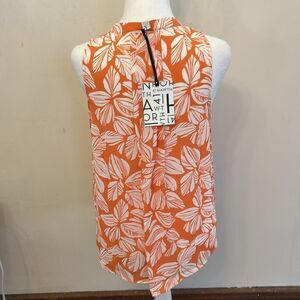 41 Hawthorn orange white leaf pattern sleeveless blouse Size S New